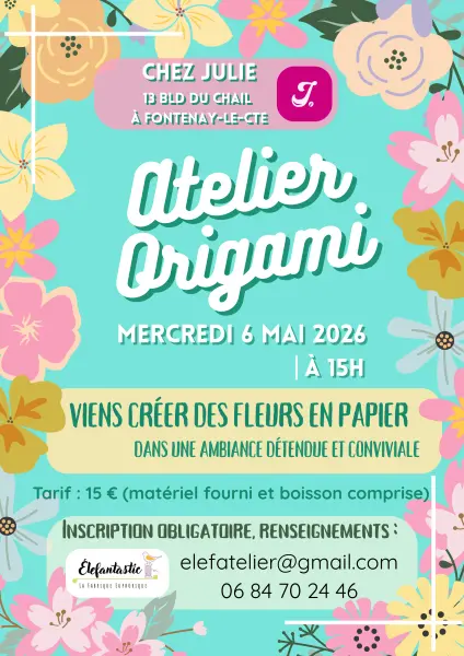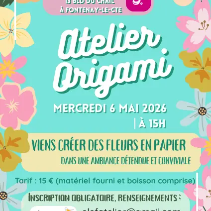 Creative origami workshop with paper flowers. Registration required on 06 84 70 24 46 or [email protected] 15€ / participant (one drink + materials included)