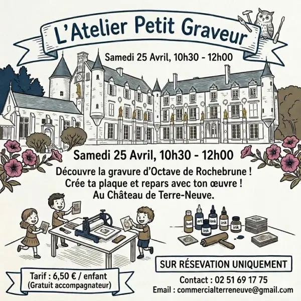At the "Petit Graveur" workshop, they'll discover the etching technique used by Octave de Rochebrune.