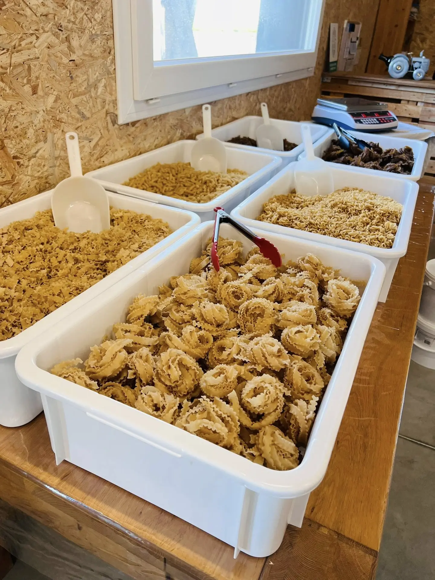> classic pasta, wholemeal, tomato (French), cep (French), buckwheat, 3 colours, all shapes and all tastes.