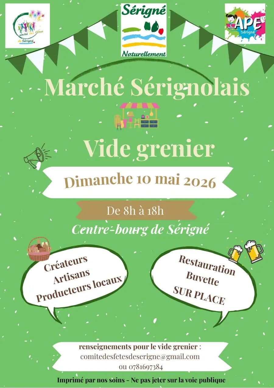 On the same day, the Comité des fêtes and the APE will be organising a garage sale in the streets of Sérigné.
