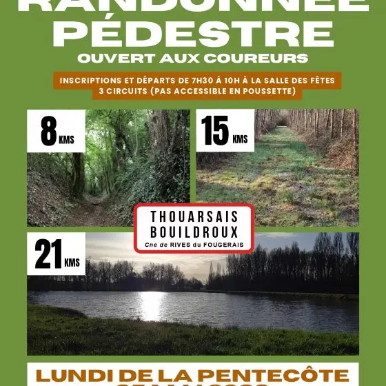 Registration and departures from 7.30am to 10am at the Thouarsais-Bouildroux village hall.