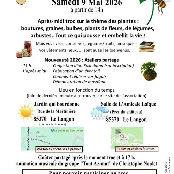 Venue: Jardin Qui Bourdonne, rue de la Martinière, Le Langon. Bring your own tables and chairs.